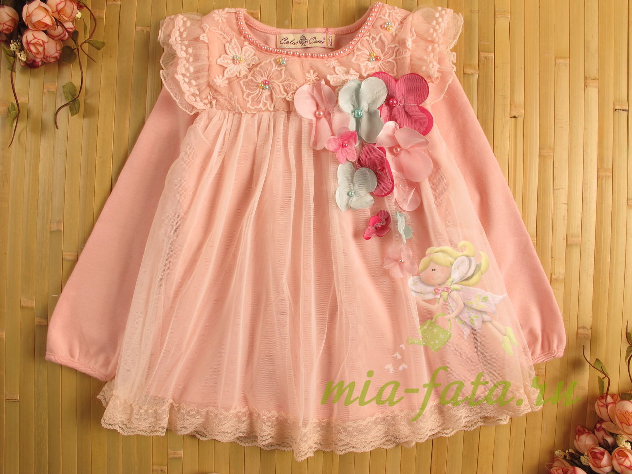 Описание: нарядная туника с оригинальным декором в виде цветов.
